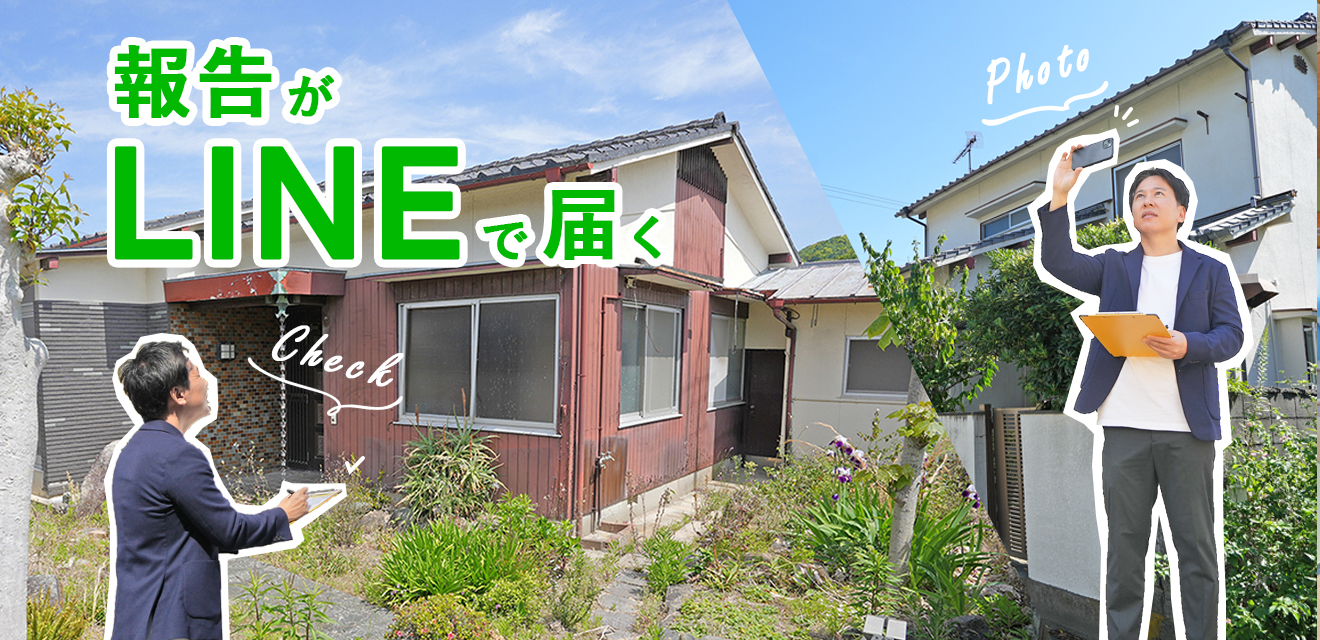 弊社では業務の効率化を図るため、LINEによる報告を取り入れています。写真や動画を効率的に送信できますので、よりリアルタイムで空き家の状況を把握することが可能です。